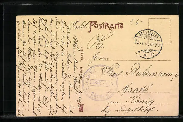 alte Ansichtskarte, gelaufen 1915 als Feldpost, Eckknick li. unten, guter Zustand