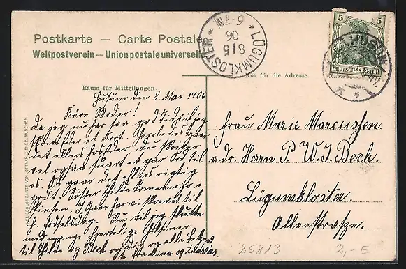 alte Ansichtskarte, gelaufen 1906, guter Zustand