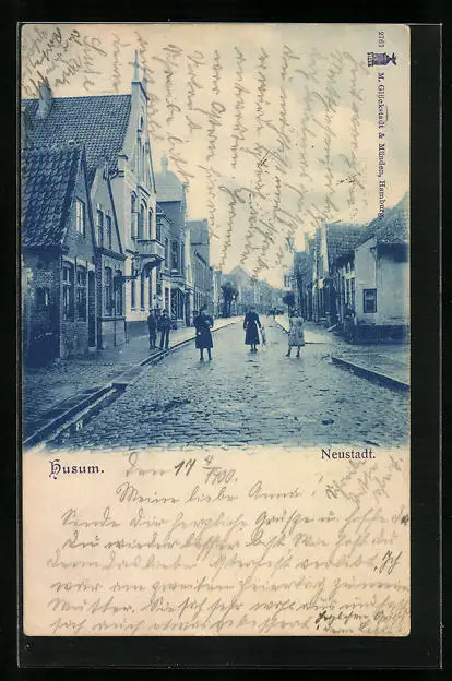 AK Husum, Partie an der Strasse Neustadt mit Passanten