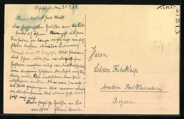 alte Ansichtskarte, gelaufen, Briefmarke entfernt, Eckknick re. oben, guter Zustand