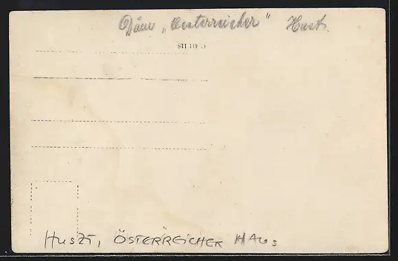 Personenbezogene Daten auf der Rückseite der Karte wurden durch blauen Textmarker unkenntlich gemacht. Die blauen Stellen sind auf die Vorderseite durchgeweicht und wirken sich negativ auf das Postkartenfoto aus