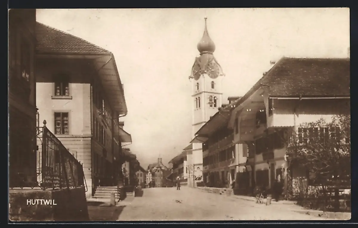 AK Huttwil, Strassenpartie mit Kirche