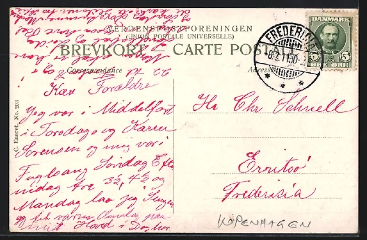Personenbezogene Daten auf der Rückseite der Karte wurden durch blauen Textmarker unkenntlich gemacht. Die blauen Stellen sind auf die Vorderseite durchgeweicht und wirken sich negativ auf das Postkartenfoto aus