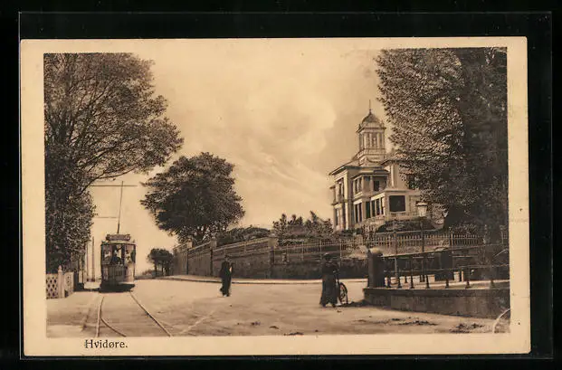 AK Hvidore, Strassenpartie mit Strassenbahn