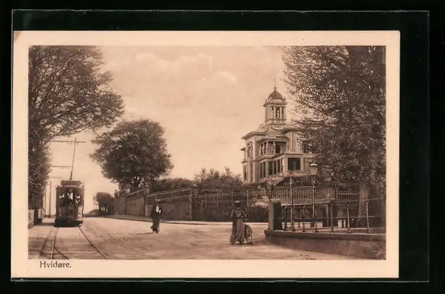 AK Hvidore, Strassenpartie mit Strassenbahn