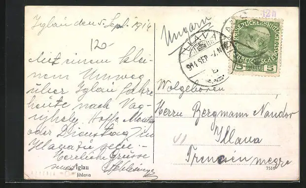 gelaufen 1914, Eckknick re. unten, guter Zustand