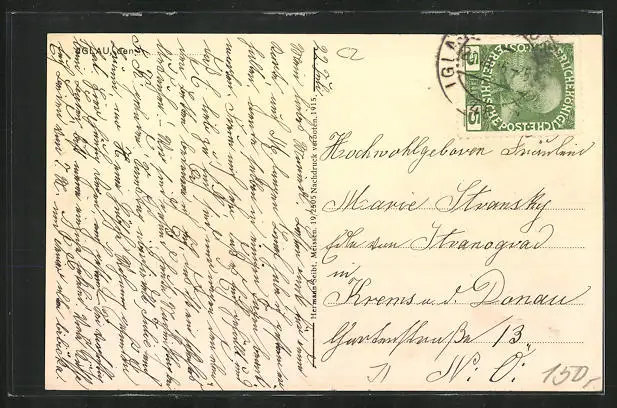 alte Ansichtskarte, gelaufen 1915, Stempelspur, guter Zustand