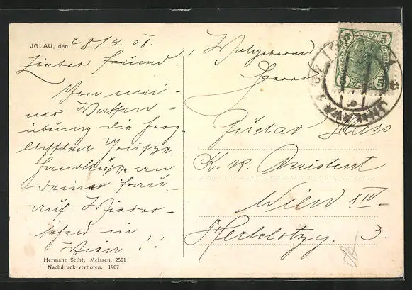 alte Ansichtskarte, gelaufen 1908, guter Zustand