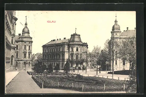 AK Iglau, Strassenpartie mit Gebäudeansicht