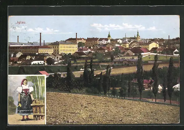 AK Iglau, Teilansicht, Frau in Tracht