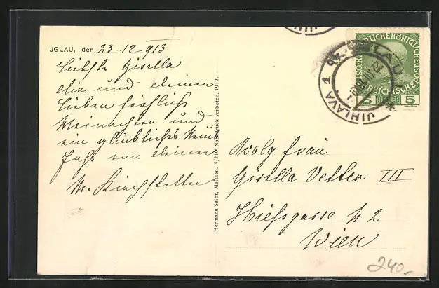 alte Ansichtskarte, gelaufen 1913, Stempelspur, Knick oben mittig, Eckknick re. unten, sonst guter Zustand