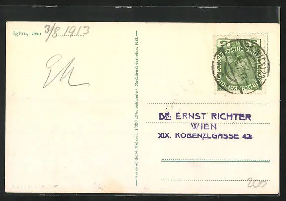 alte Ansichtskarte, gelaufen 1913, Stempelspur, guter Zustand