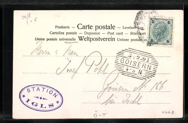 alte Ansichtskarte, gelaufen 1901, guter Zustand