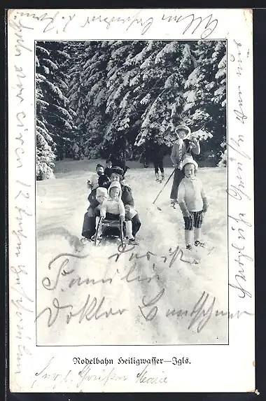 AK Igls, Kinder auf der Rodelbahn Heiligwasser