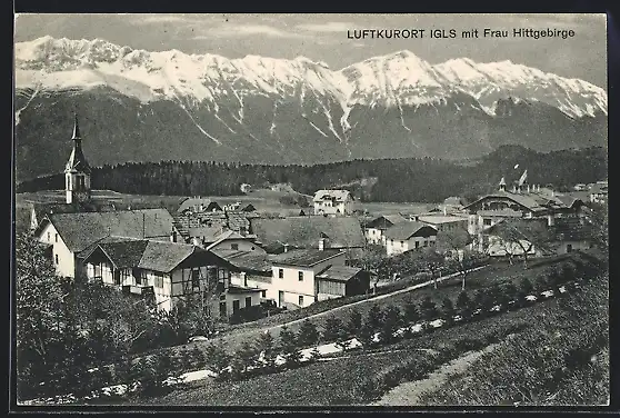 AK Igls, Ortsansicht mit Frau Hittgebirge