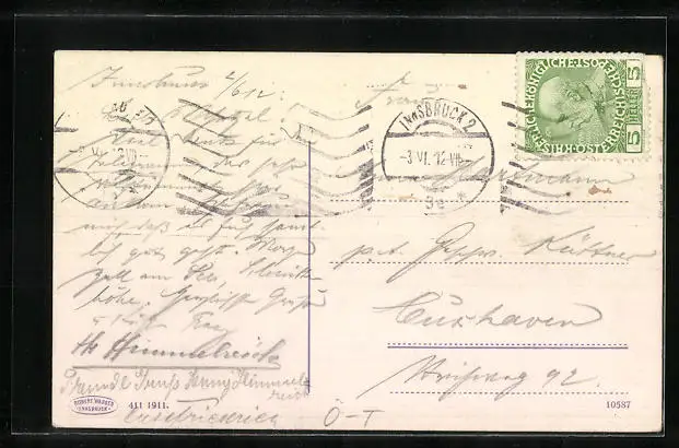 alte Ansichtskarte, gelaufen 1912, Stempelspur, guter Zustand