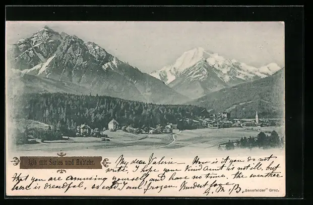 AK Igls, Ortspartie mit Serles und Habicht