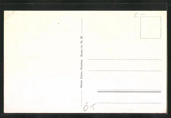 Personenbezogene Daten auf der Rückseite der Karte wurden durch blauen Textmarker unkenntlich gemacht. Die blauen Stellen sind auf die Vorderseite durchgeweicht und wirken sich negativ auf das Postkartenfoto aus
