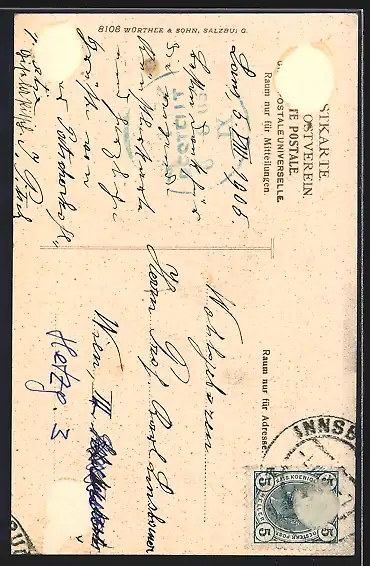 alte Ansichtskarte, gelaufen 1905, rückseitig Oberflächenschaden, guter Zustand