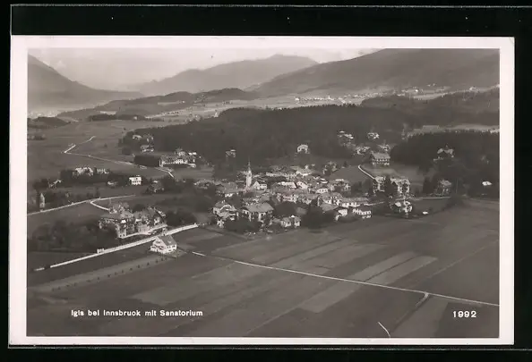 AK Igls b. Innsbruck, Ortsansicht aus der Vogelschau mit Sanatorium