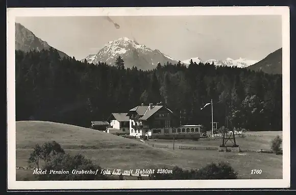AK Igls i. T., Hotel Pension Gruberhof mit Habicht