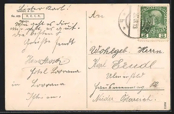 alte Ansichtskarte, gelaufen 1913, guter Zustand