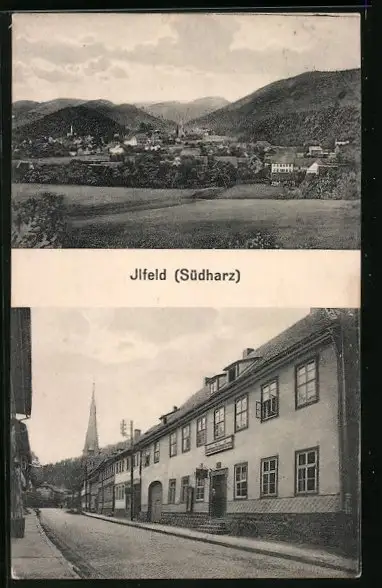 AK Ilfeld /Südharz, Gasthaus Goldene Krone, Ortsansicht