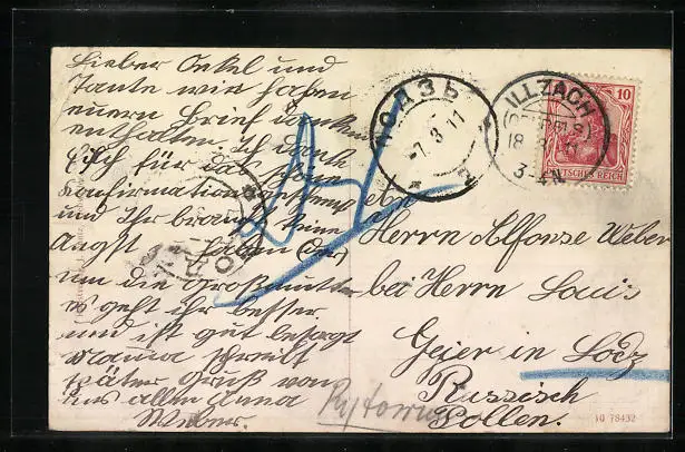 alte Ansichtskarte, gelaufen 1911, Eckknicke re., guter Zustand