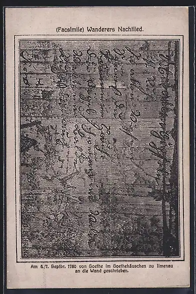 AK Ilmenau, Goethehäuschen, Faksimile Wanderers Nachtlied