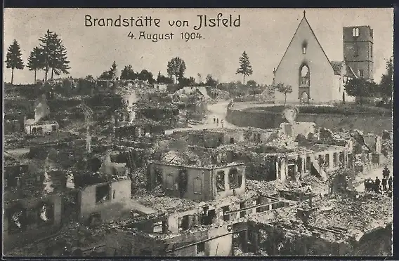 AK Ilsfeld, Brandstätte 1904, Zerstörte Ortspartie