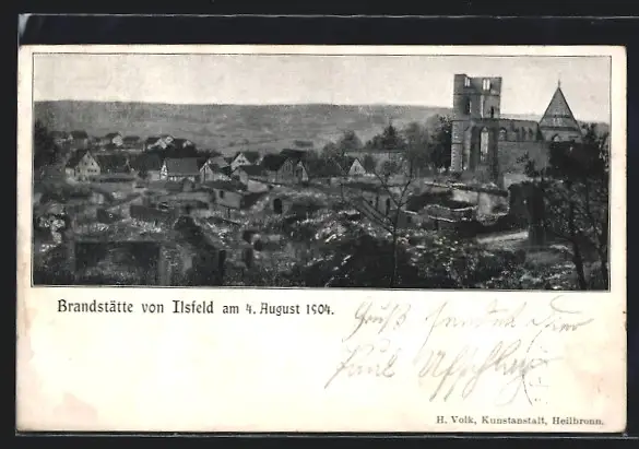 AK Ilsfeld, Brandstätte am 4. August 1904