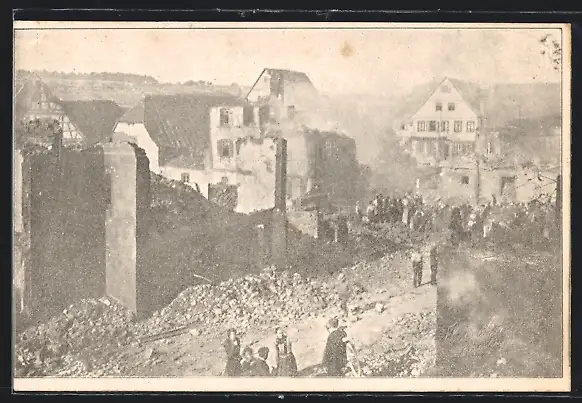 AK Ilsfeld, Zerstörte Ortspartie nach Brand 1904