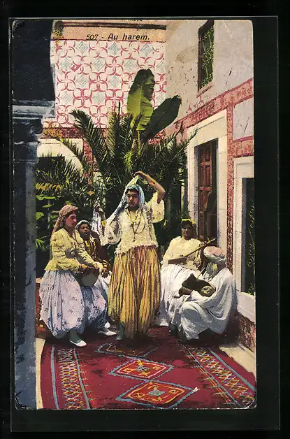 AK Im Harem, Tänzerin, Handtrommel, Zupfinstrument