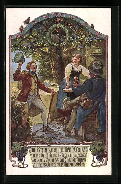 AK Im Krug zum grünen Kranze, Student trinkt Wein