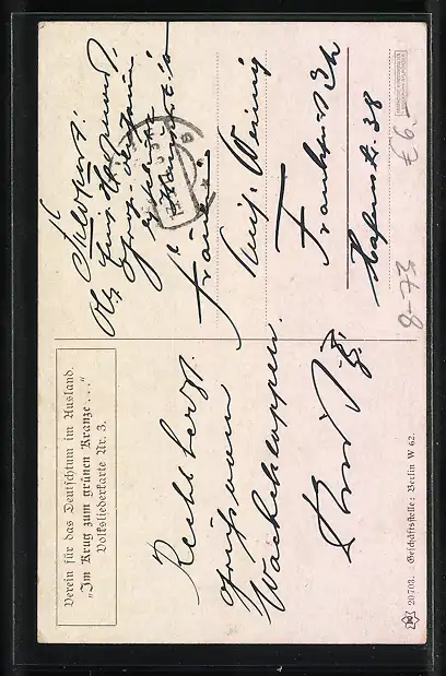 Personenbezogene Daten auf der Rückseite der Karte wurden durch blauen Textmarker unkenntlich gemacht. Die blauen Stellen sind auf die Vorderseite durchgeweicht und wirken sich negativ auf das Postkartenfoto aus
