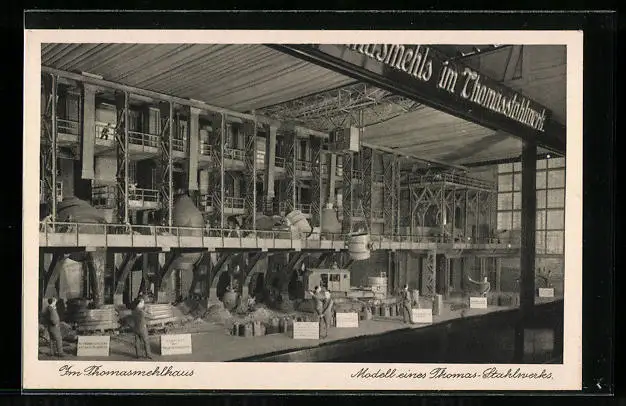 AK Im Thomasmehlhaus, Modell eines Thomas-Stahlwerks, Reklame