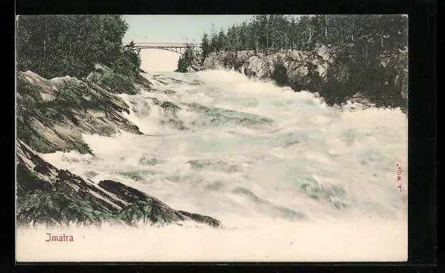 AK Imatra, Uferpartie mit Brücke