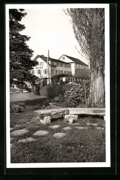 AK Immenstaad a. B., Gasthof-Pension Seehof mit Steinbank