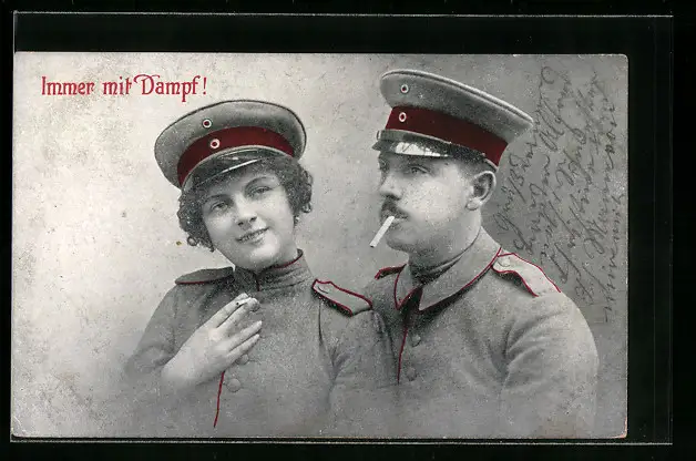 AK Immer mit Dampf! Soldatin in Uniform und mit Zigarette
