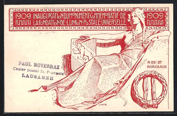 AK Inauguration du Monument com Memoratif de la Fondation l`union Postale Universelle 1909 Schweiz