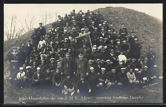 AK Inder-Mannschaften der SMS Möwe versenkten feindlichen Dampfer, Kriegsschiff, Kriegsgefangene