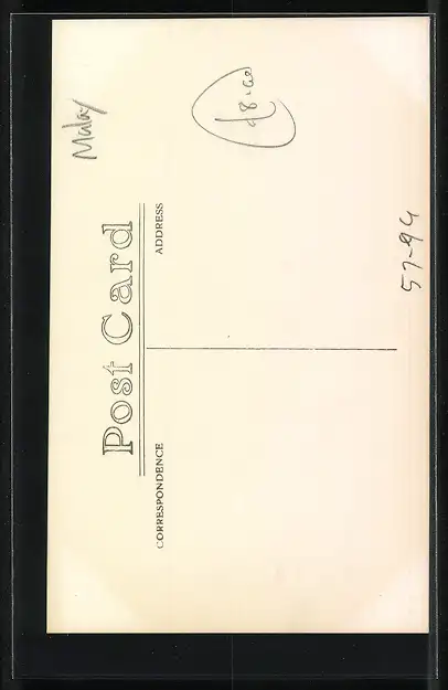 Personenbezogene Daten auf der Rückseite der Karte wurden durch blauen Textmarker unkenntlich gemacht. Die blauen Stellen sind auf die Vorderseite durchgeweicht und wirken sich negativ auf das Postkartenfoto aus