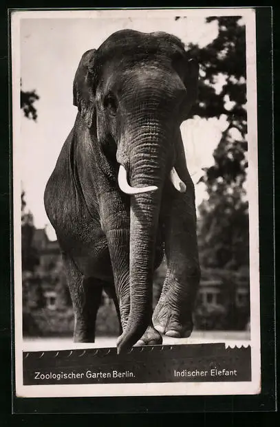 AK Indischer Elefant mit Stosszähnen im Berliner Zoo