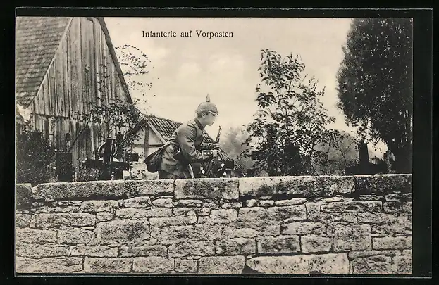 AK Infanterie-Soldat in Uniform auf Vorposten
