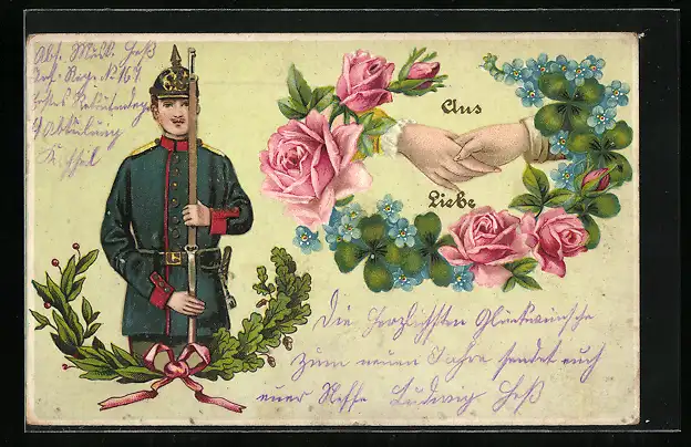 AK Infanterie-Soldat in Uniform mit Liebesgruss
