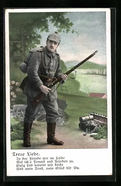 AK Infanterie-Soldat in Uniform mit Pickelhaube und Gewehr
