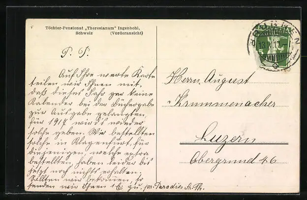 AK Ingenbohl, Töchter-Pensionat Theresianum, Vorderansicht