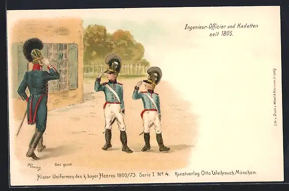 AK Ingenieur-Officier und Kadetten in Uniform