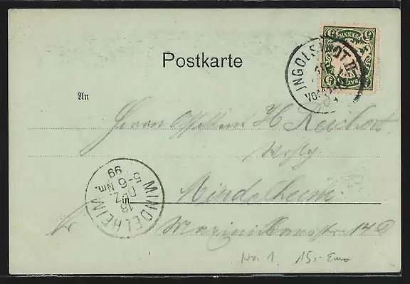 alte Ansichtskarte, gelaufen 1899, guter Zustand