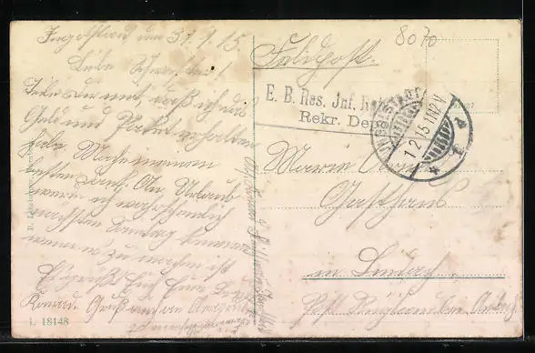 alte Ansichtskarte, gelaufen als Feldpost 1915, guter Zustand